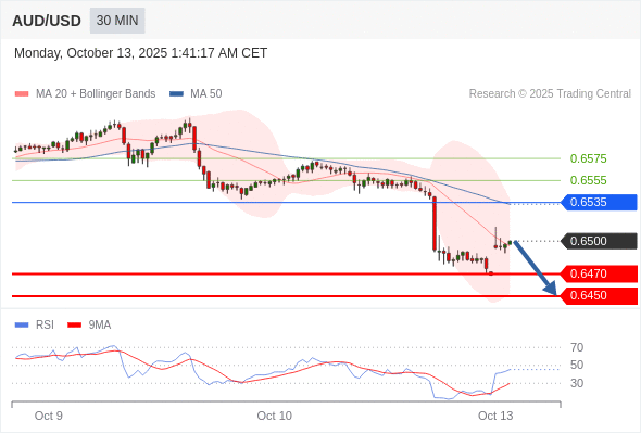 在 0.6535 之下,看跌,目标价位为 0.6470 ,然后为 0.6450 。
