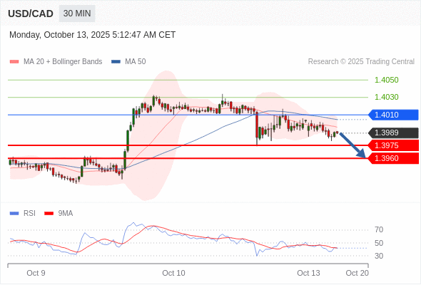 在 1.4010 之下,看跌,目标价位为 1.3975 ,然后为 1.3960 。