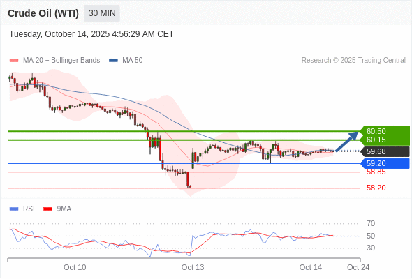 在 59.20 之上,看涨,目标价位为 60.15 ,然后为 60.50 。