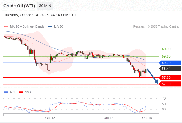 交易策略: 在 59.00 之下,看跌,目标价位为 57.60 ,然后为 57.00 。