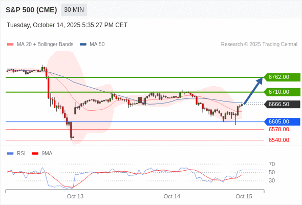 在 6605.00 之上,看涨,目标价位为 6710.00 ,然后为 6762.00 。